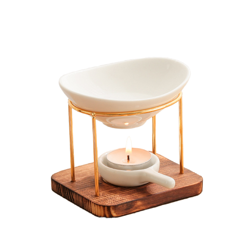 Quemador de aceite a base de madera exquisito para difusor de cera de té aromático de oficina en casa