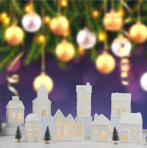 2024 Navidad creativa casa de nieve cerámica LED pequeña casa decoración adornos DIY traje